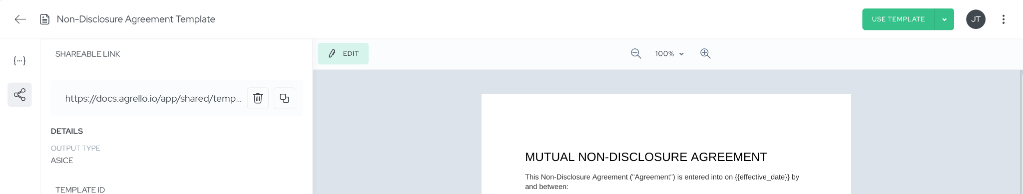 - Generate a shareable link to your template.