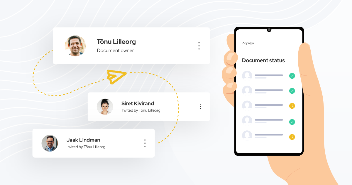 Jaga dokumente kiireks veebipõhiseks allkirjastamiseks Agrello e-allkirja lahendusega. Kogu juriidiliselt kehtivaid allkirju igalt poolt maailmast – kontot pole vaja. Ideaalne salastuslepingutele, lepingutele ja vormidele