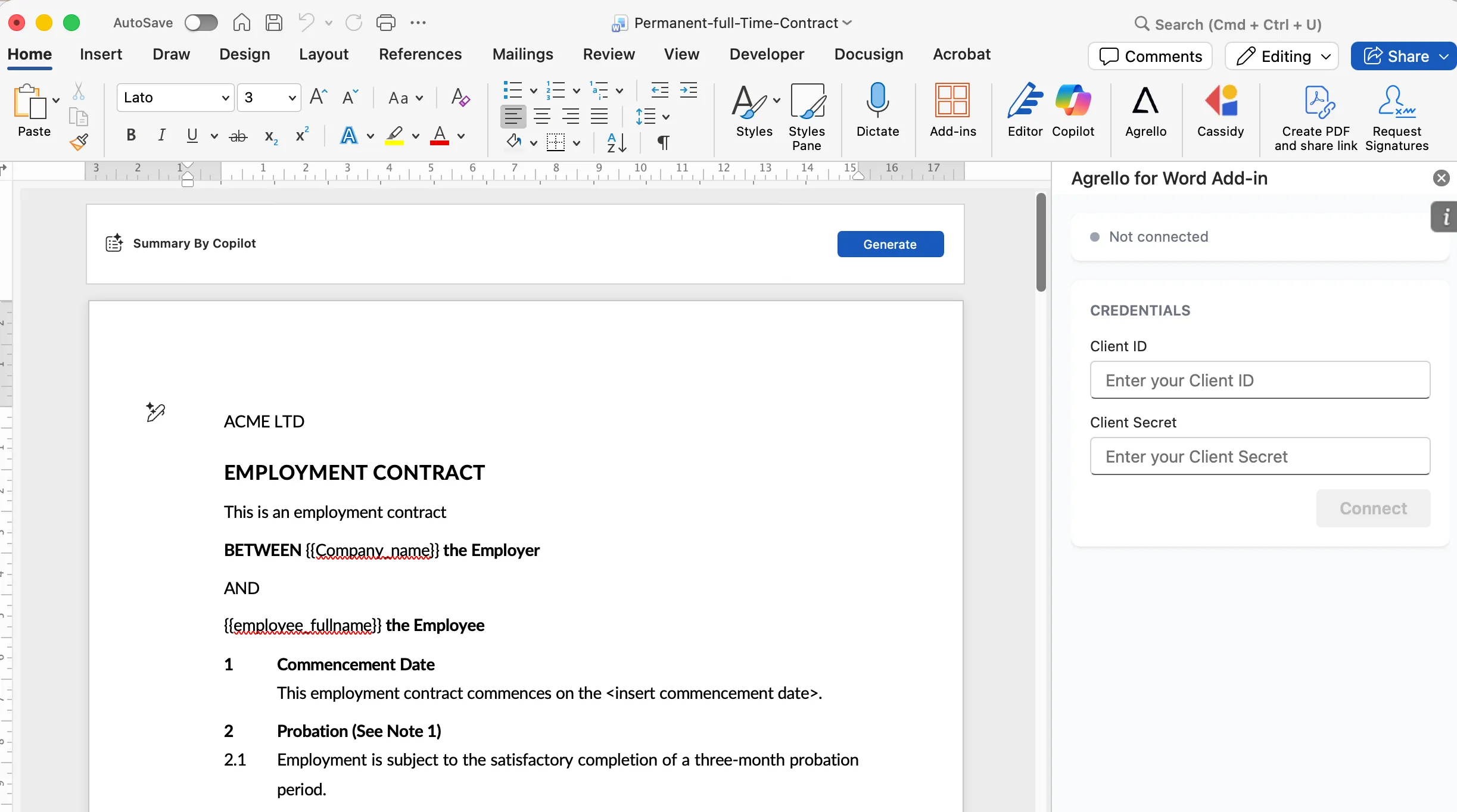 - Відкрийте додаток Agrello у Word (натисніть кнопку Agrello на вкладці Home)